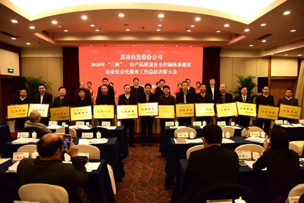 12月19日,蘇墾農(nóng)發(fā)股份公司在南京隆重召開(kāi)2018年“三秋”、農(nóng)產(chǎn)品質(zhì)量安全控制體系建設(shè)、農(nóng)業(yè)社會(huì)化服務(wù)工作總結(jié)表彰大會(huì)。集團(tuán)公司總經(jīng)理、蘇墾農(nóng)發(fā)股份公司董事長(zhǎng)胡兆輝主持會(huì)議并講話(huà)。集團(tuán)公司黨委委員、蘇墾農(nóng)發(fā)股份公司總裁蘇志富作報(bào)告,并宣讀表彰決定。會(huì)議表彰了在2018年“三秋”工作、農(nóng)產(chǎn)品質(zhì)量安全控制體系建設(shè)及農(nóng)業(yè)社會(huì)化服務(wù)工作中表現(xiàn)優(yōu)異、成績(jī)突出的先進(jìn)集體和先進(jìn)個(gè)人。