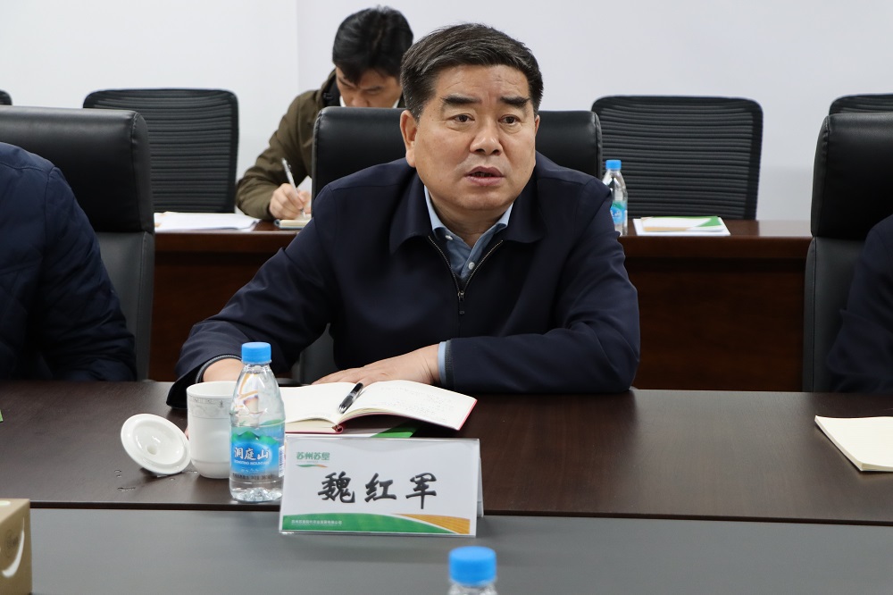 魏紅軍在調(diào)研座談時,充分肯定了蘇州蘇墾成立以來取得的成效。他表示在經(jīng)濟最發(fā)達地區(qū)推行蘇墾模式,展示農(nóng)業(yè)現(xiàn)代化水平,樹立一面旗幟,非常不容易。他強調(diào)要不斷探索實踐,不斷總結提高,豐富“蘇墾模式”的內(nèi)涵;要加強宣傳,積極與地方政府溝通,講好蘇州蘇墾故事,爭取更多支持,贏得持續(xù)健康發(fā)展。
