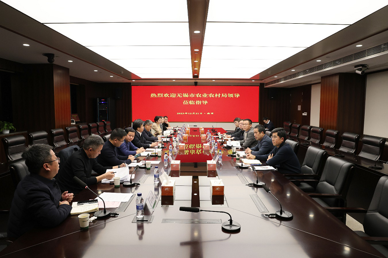 •     12月21日下午,無錫市農業農村局黨組書記、局長吳立剛一行10人到蘇墾農發調研交流,集團公司總經濟師、蘇墾農發黨委書記、董事長朱亞東接待并匯報交流。蘇墾農發副總裁陳培紅、總裁助理徐啟來參加接待。