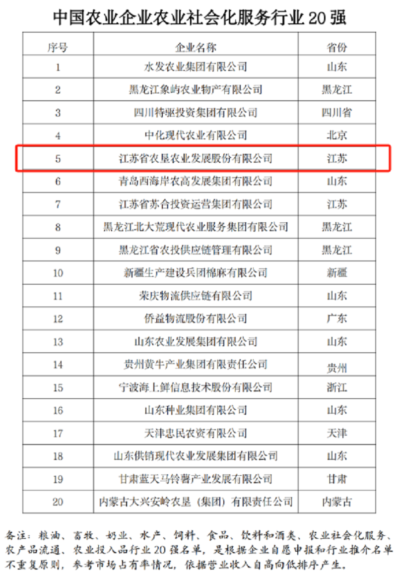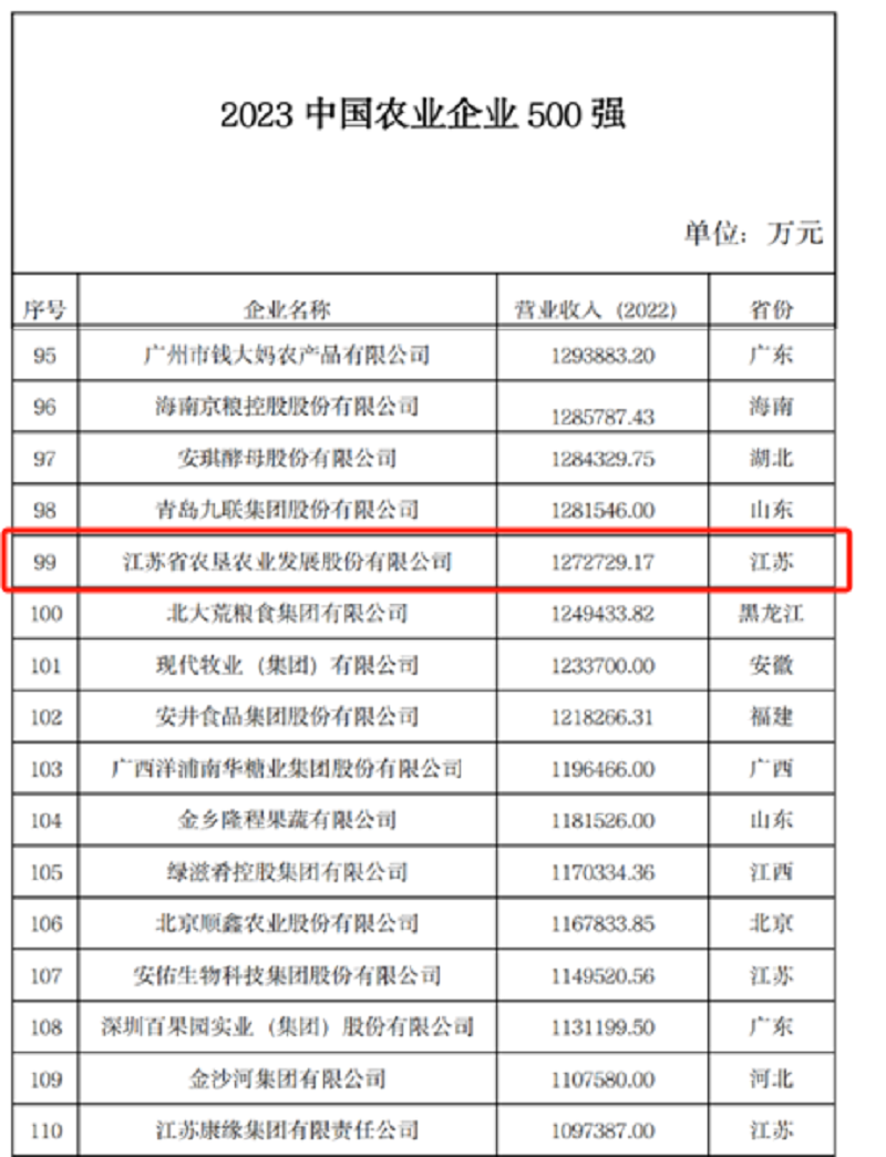 蘇墾農發入選2023中國農業企業500強、農業社會化服務行業20強