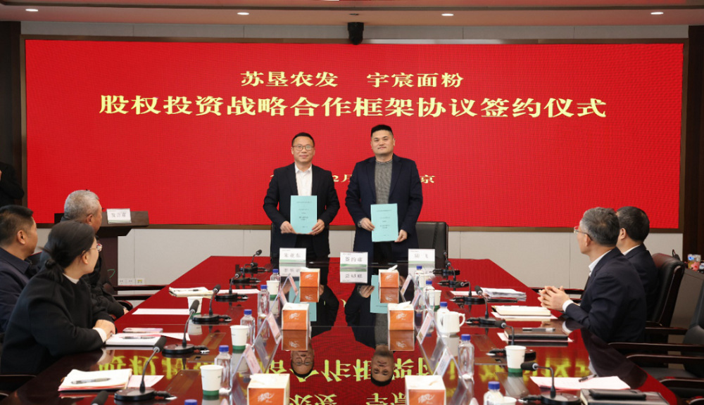 12月26日,蘇墾農(nóng)發(fā)與宇宸面粉股權(quán)投資戰(zhàn)略合作框架協(xié)議簽約儀式在南京舉行。集團(tuán)公司總經(jīng)濟(jì)師、蘇墾農(nóng)發(fā)黨委書(shū)記、董事長(zhǎng)朱亞?wèn)|和宇宸面粉董事長(zhǎng)陸飛分別進(jìn)行致辭。集團(tuán)公司黨委委員、蘇墾農(nóng)發(fā)總裁丁濤主持簽約儀式。